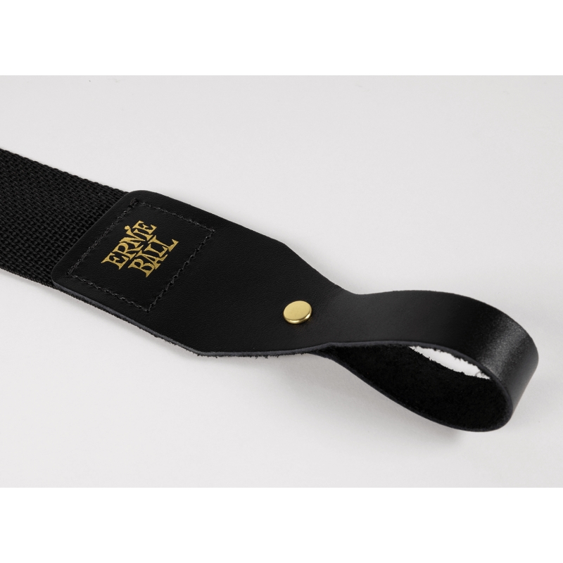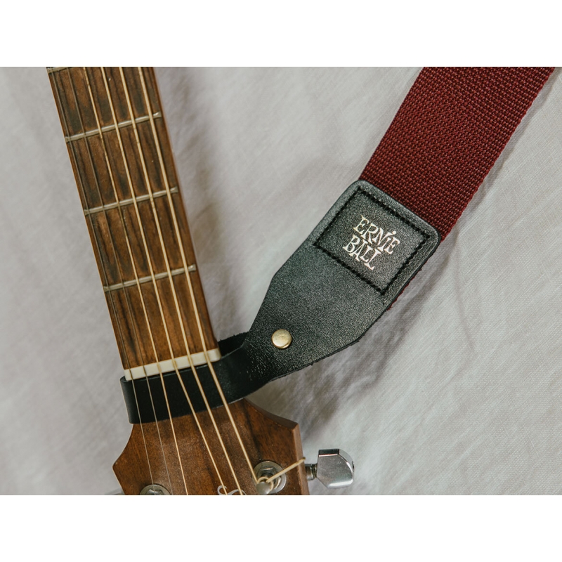 Pasek do gitar wykonany z polypropylenowej plecionki. Zaczepy skórzane z logiem ERNIE BALL. Pasek posiada skórzaną pętle do prostego zaczepiania na główce gitary