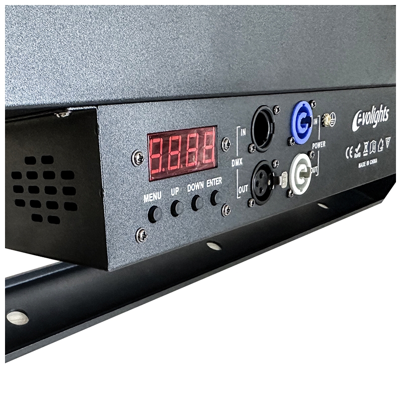 Evolights Lumen Pix Bar charakteryzuje się przede wszystkim bardzo łatwą i intuicyjną obsługą. Listwa ta może pracować samodzielnie lub być kontrolowana, dlatego świetnie sprawdza się na każdej imprezie. Panel sterowania składa się z wyświetlacza LCD oraz 4 przycisków. Za ich pomocą możemy wprowadzać zmiany w ustawieniach menu, ustawić kolory statyczne belki lub wybrać jeden z 4 interesujących nas trybów pracy: