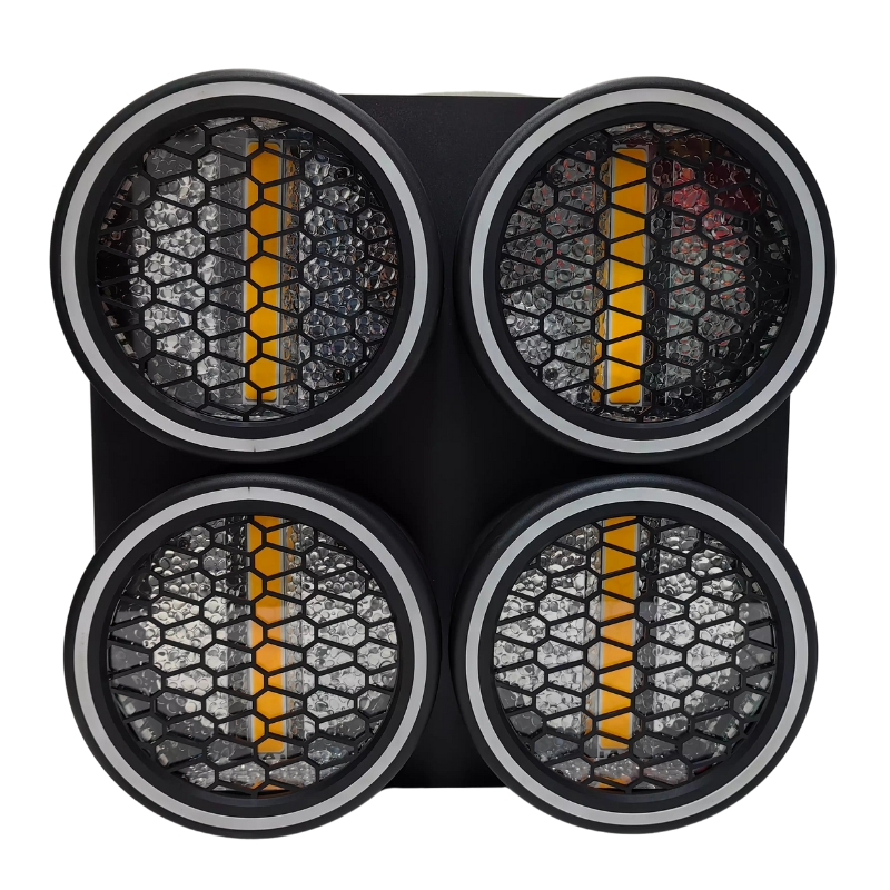 Light4Me Blinder Led 4 Ring posiada cztery mocne, 30-watowe diody LED operujące ciepłym białym światłem o temperaturze barwowej 2000K. ✅ Wszystkie cztery diody mogą świecić niezależnie, pracować w sposób ciągły lub wytwarzać efekty stroboskopowe. Natężenie światła może być w łatwy sposób kontrolowane za pomocą liniowego dimmera – od subtelnego podświetlenia aż do intensywnego blasku ✅. Dzięki temu oświetlacz dzięki czemu doskonale sprawdza się zarówno na małej i dużej scenie, a także w klubach tanecznych i dyskotekach.
