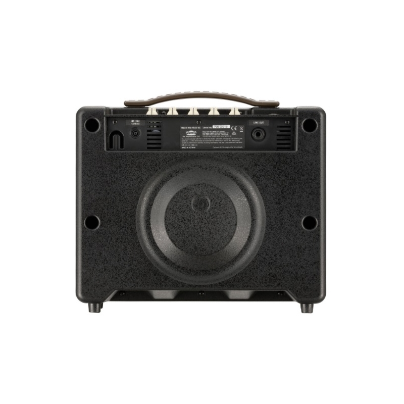 Struktura Bass Reflex zapewnia dużą moc wyjściową i bogate odtwarzanie niskich częstotliwości - Stosowana jest opatentowana, zoptymalizowana struktura bass reflex, z każdym szczegółem dostosowanym specjalnie do gitary akustycznej. Podwozie wykorzystuje polimer ABS ze względu na jego niewielką wagę, trwałość i doskonałe właściwości akustyczne. Pozwala to również na projekt 3D, który byłby niemożliwy w przypadku materiału drewnianego i osiągnąłby idealny rezonans szafy. Ponadto do przegrody wykorzystuje się drewno, uzyskując optymalny rezonans dla wzmacniacza gitarowego. Podczas gdy podwozie jest polimerowe, wykończenie z kamienistego wykończenia emanuje również wyjątkowym poczuciem wysokiej jakości
