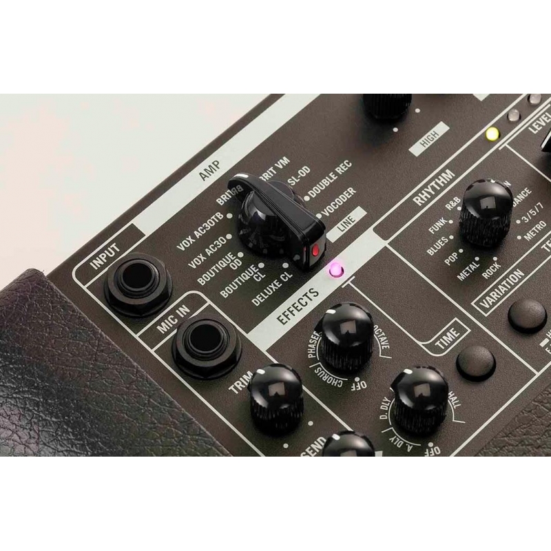 - Efekty: 8 (CHORUS, PHASER, TREMOLO, OCTAVE, A.DLY, D.DLY, SPRING, HALL)
