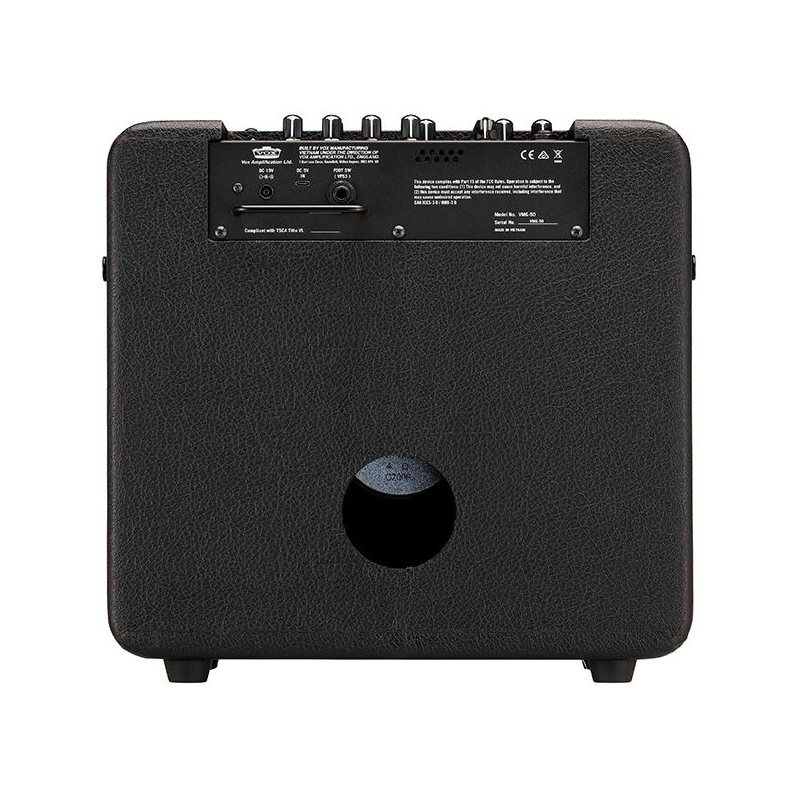Złącza i wejścia/wyjścia: Vox Mini Go 50 jest wzmacniaczem, który oferuje wyjątkową wszechstronność pod względem złączy i wejść. Posiada wejście INPUT jack, które pozwala na podłączenie gitary elektrycznej lub akustycznej, oraz wejście MIC IN jack, umożliwiające podłączenie mikrofonu do wykorzystania vocodera lub innych efektów. Dodatkowo, wejście AUX IN jack pozwala na podłączenie zewnętrznych urządzeń audio, takich jak odtwarzacze muzyczne, co umożliwia odtwarzanie ścieżek dźwiękowych w tle. Wzmacniacz oferuje również wyjście PHONES jack, które umożliwia podłączenie słuchawek, co jest idealnym rozwiązaniem do cichych prób. Vox Mini Go 50 posiada także gniazdo FOOT SW, które pozwala na podłączenie przełącznika nożnego, dając pełną kontrolę nad funkcjami rytmów, efektów i looperu. Ponadto, zasilanie urządzenia odbywa się za pomocą gniazda DC jack i DC 5V IN jack, umożliwiając zarówno zasilanie sieciowe, jak i zasilanie mobilne, co daje jeszcze większą elastyczność w użytkowaniu.
